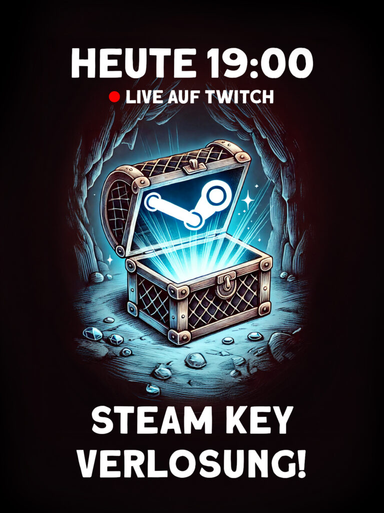Hey, schön dass du da bist! Heute um 19:00 Uhr verlosen wir 5 Premium Steam Keys live auf Twitch und du kannst einer der glücklichen Gewinner sein.